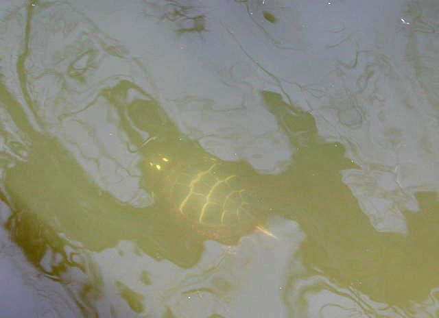 As part of this years turtle & terrapin field school, which kicks off on 23 June, we will launch a research project to assess the size and health of the Sanctuarys painted turtle population to support Wellfleet Bays ecological management program. The goal is to ensure that land management practices preserve the painted turtles water habitat and nesting sites, and that future generations of Sanctuary visitors will be welcomed with the same reptilian yawn. Data sheets and database have been prepared. Background information researched. Equipment selected. All stands in readiness . . . except for the minor ingredient of a little practical, hands-on experience for the instructor. So today I hiked along Silver Spring Brook trail with trusty long-poled net in hand. The objective was to capture one turtle and test the research protocols in the field. The log rafts are too far from the bank to reach without a boat. So I focused on the shoreline within reach of my 10-foot net. The first painted turtle I spotted was a small juvenile zigzagging between reeds in the shallows. It would have been an easy captured, except that these shallows were protected by an impenetrable thicket of wild rose bushes. Score one for the turtles. Just down the path lies the boat dock, which extends about 20 feet into the brook. I stood at its edge and scanned the water. Nothing. And then as I turned to leave, I saw a painted turtle swimming toward me along the mucky bottom. An easy capture. Score one for the researcher. | |||||||