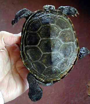 An early find on 28 January, this five-year-old male with a 11.4 cm carapace was fully intact except for his missing head.
