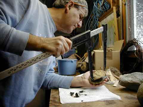 Don Lewis measures the plastron of this old male (with a smooth plastron). Found nearly fully decomposed on 5 April 2000, the shell was softened, scraped, and dinged.