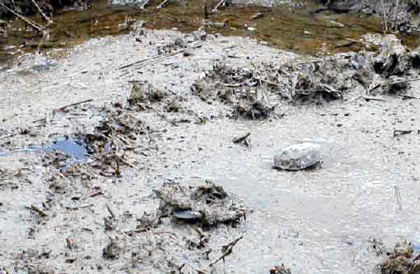 Update, 27 April 2000: The remains of two diamondback terrapins were recovered from a mud pool in the salt marsh south of Fox Island on Wellfleet's Indian Neck. Both were breeding females, one eight years old and the other more than 12; neither had been previously marked. Today’s turtles bring the total to 79 dead terrapins found within the Fox Island Wildlife Manage Area this year. For comparison, the remains of six terrapins were discovered in the similar marsh habitat south of Lieutenant Island, two in the marshes adjacent to Old Wharf, and one in the extensive marshland surrounding the Wellfleet Bay Wildlife Sanctuary.